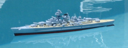 Add some weight to the model if the waterline is too high. For the Bismarck, Bow section